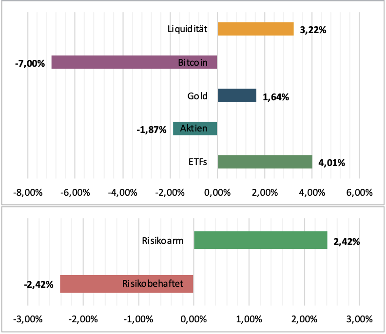 Hinsichtlich der Risiko-Allokation erkennt man allerdings auch eine positive Entwicklung zu den angepeilten 20%.