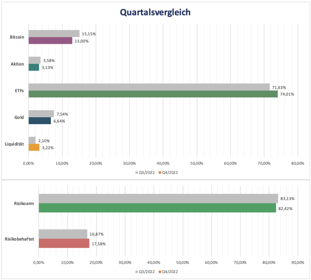 Im Quartalsvergleich sind vor allem die negative Kursentwicklung des Bitcoin’s zu erkennen, sowie die aufgebaute Liquidität.