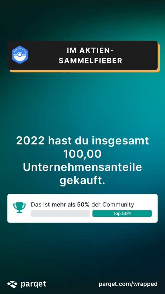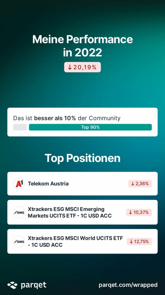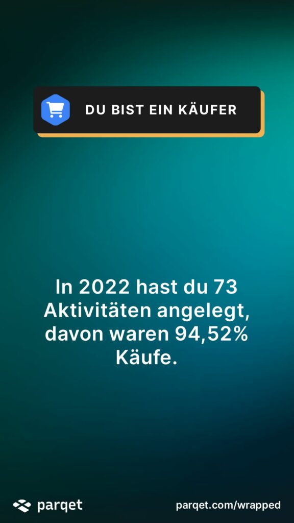 Ein neues Feature, welches zum Ende des Jahres 2022 aktiviert wurde, ist Parqet Wrapped, welches speziell für die Postings auf Social Media-Plattformen konzipiert wurde, mir aber auch für den Blog gefallen. 😉