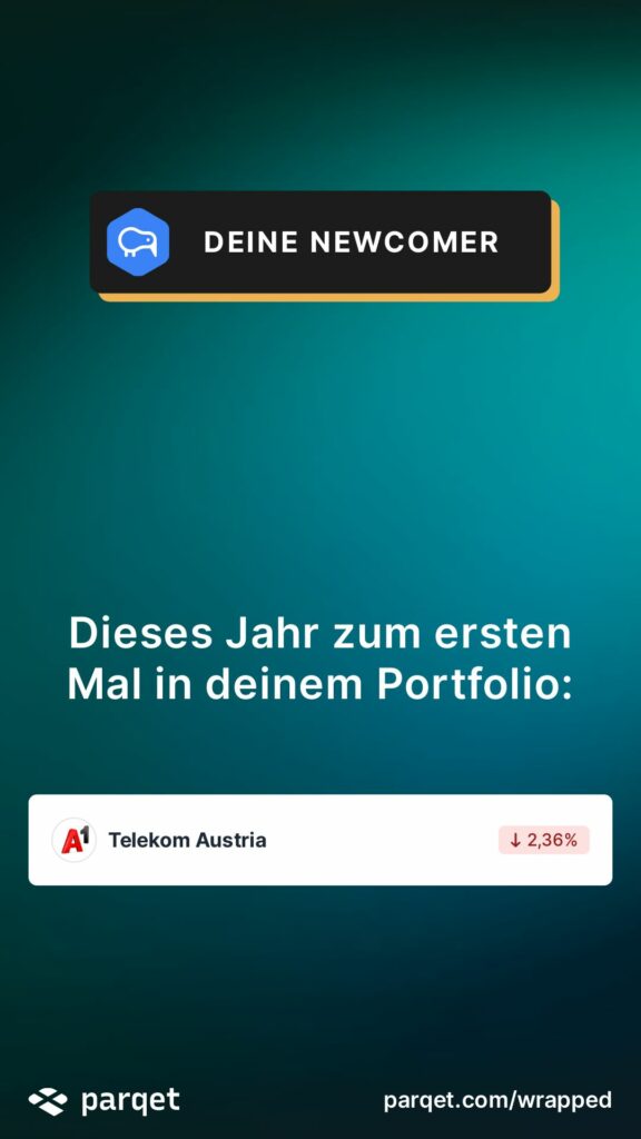 Auch an meinen Newcomer im Portfolio, den ersten Einzeltitel aus Österreich, der Telekom Austria AG werde ich von Parqet erinnert. Was die Performance angeht, schaut dieser Wert noch am besten in diesem Jahr aus.