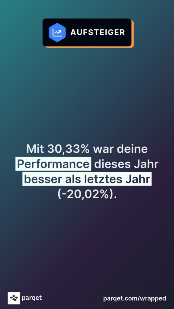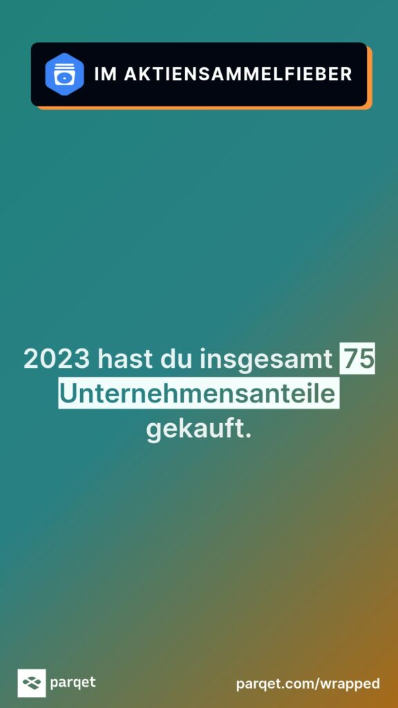 Im Vergleich zum Vorjahr konnte ich meine Investitions-Quote erhöhen (+1.573€) und liege damit sogar in den Top 30% der Parqet-Community. Mal sehen, ob ich das in 2024 erneut übertreffen kann, immerhin soll der Großteil in Tagesgeld für das EK zum Hausbau wandern. Wie auch 2022 habe ich exakt 37 mal Bitcoin gekauft, das letzte mal noch um einen Dip kurz vor Silvester zu nützen. 😅 Auch meine Aktienanteile habe ich durch den Nachkauf von ETS erhöht, jedoch sind es in Summe weniger Anteile als im letzten Jahr. Eigentlich wollte ich ja noch TA aufstocken, dafür war mir aber im letzten Quartal dann der Kurs davongelaufen. 🤗