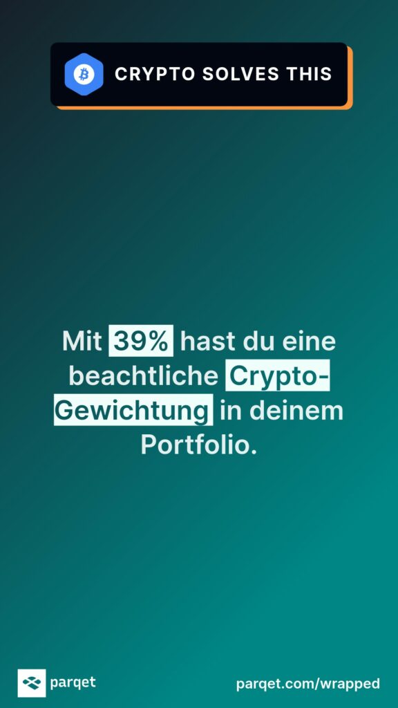 Hinsichtlich meiner Verteilung innerhalb des Portfolios ist Thomas von Finanzfluss wohl auch 2023 stolz auf mich, denn knapp 58% sind in breit gestreute ETFs investiert. 😅 Weniger begeistert wäre er wohl von meiner Allokation in Bitcoin, welche bei 39% liegt. Ich bin dagegen als Bitcoiner weniger begeistert davon, dass Parqet meine Gewichtung „Crypto“ nennt, denn Bitcoin != Crypto. 😋