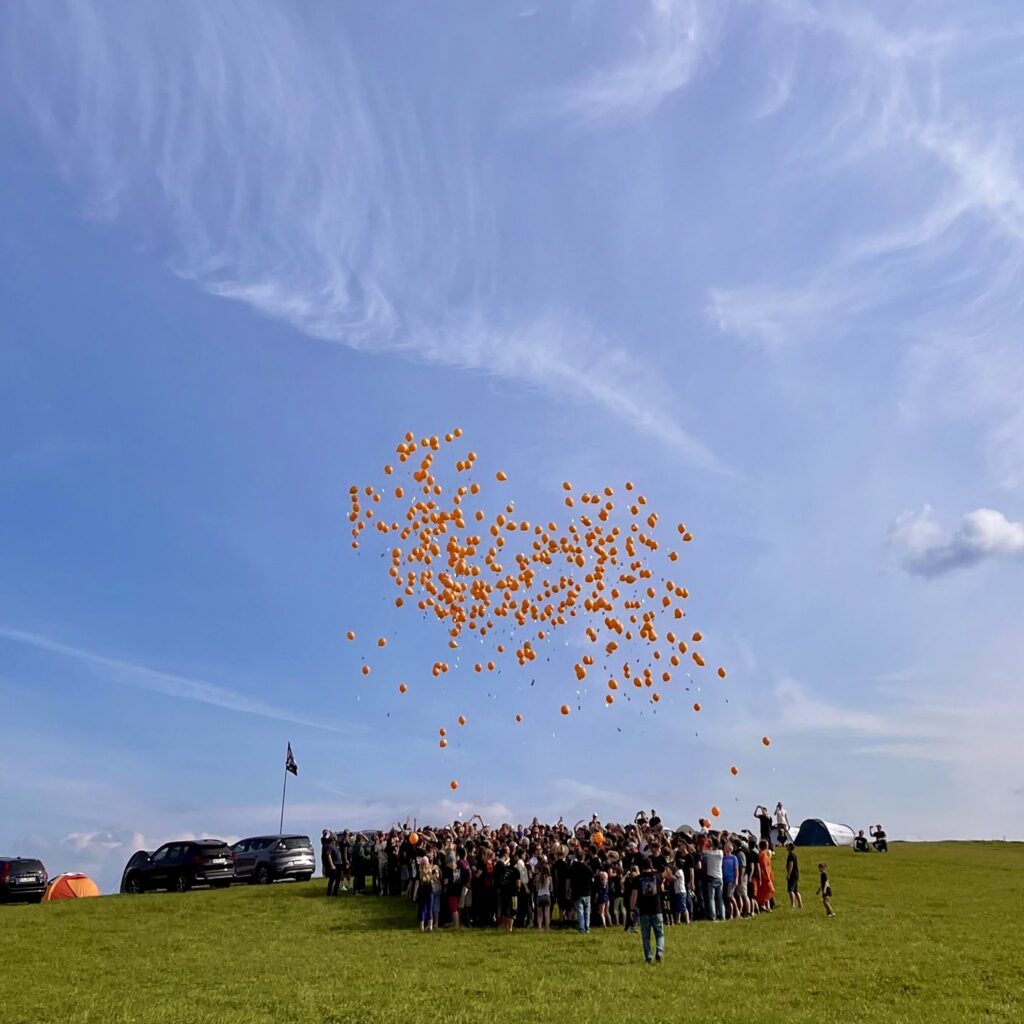 Als besonderes Highlight wurde aus allen Teilnehmern ein Bitcoin-Logo gebildet und 400 Luftballons steigen gelassen (ja, biologisch abbaubar ^^ und mit einem QR-Code für 5€ in SATs für den Finder drauf). Neun davon wurden scheinbar schon eingelöst, fünf davon aber schon vor dem abheben – da wollte wohl jemand selber stacken. 😅