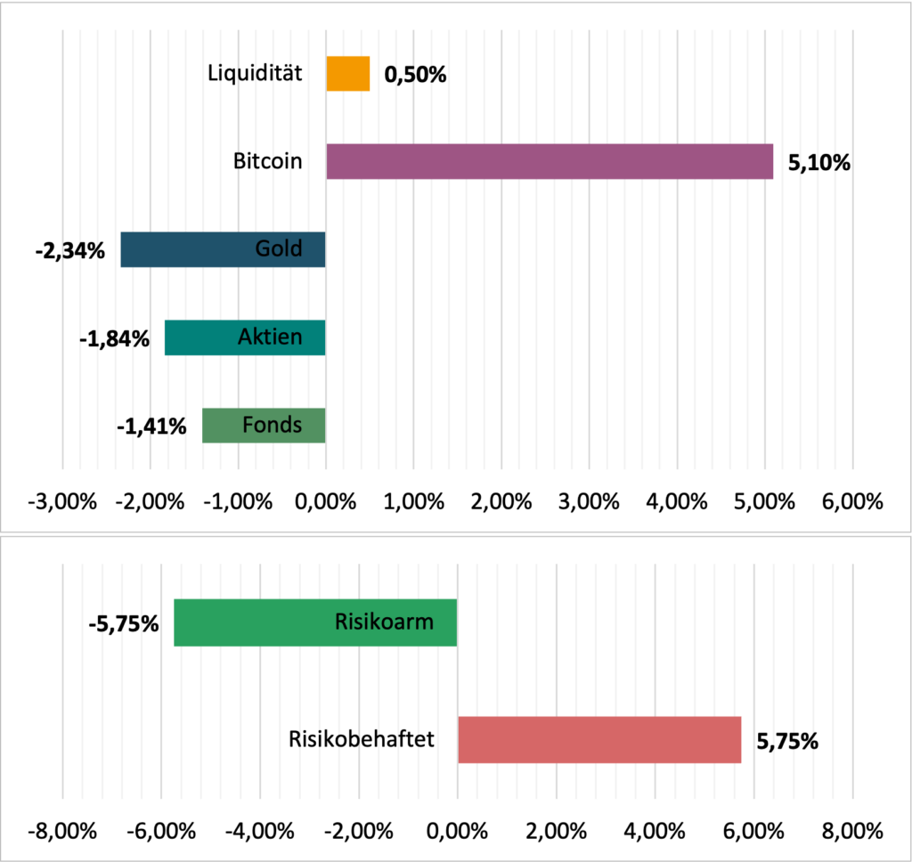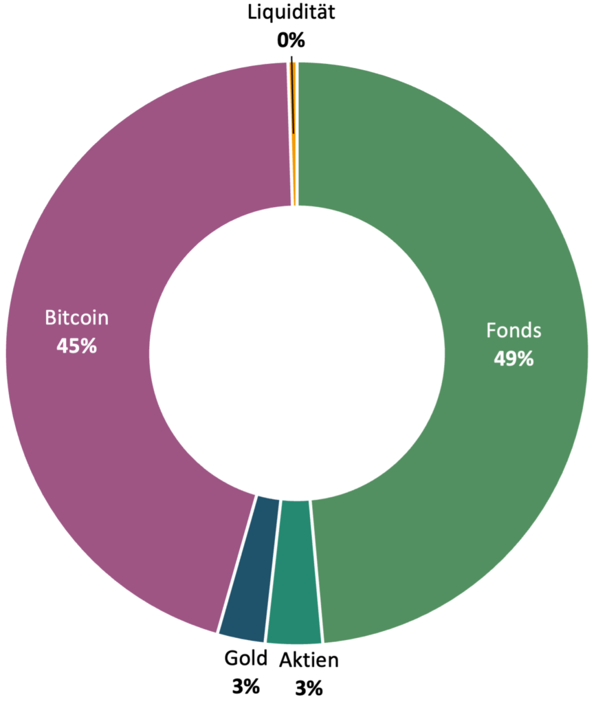 Während im letzten Monat mit steigendem Bitcoin-Preis der Portfolioanteil gestiegen ist, hat er sich im August wieder nach unten balanciert. Somit bleibt das Ding einfach stark schwankend und eine Aussage hinsichtlich der Allokation schwierig. Jedenfalls steht Gold bei einem neuen Alltime-High und damit der Anteil auch wieder etwas besser.