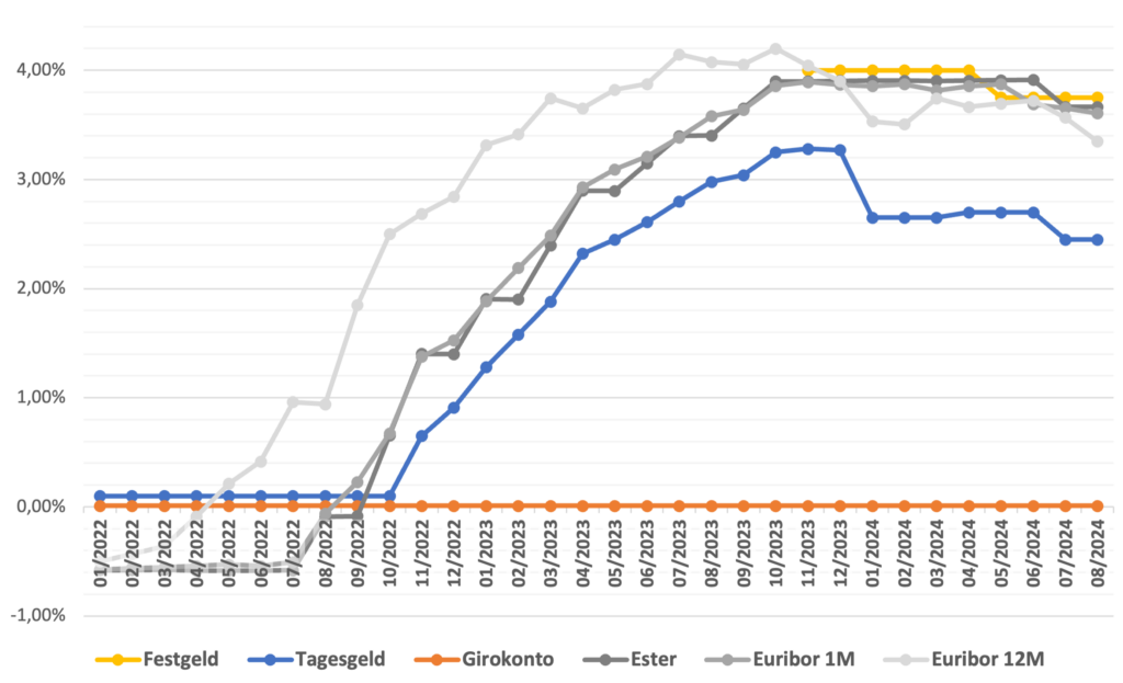 Auch die Zinsen sind weiterhin am langen Ende fallend und nähern sich beim 12M Euribor der 3% Grenze. Mal schauen wie es bis zum Ende des Jahres aussehen wird, wo dann bald eine Bauentscheidung getroffen werden muss. Das Festgeld ist noch bis April gebunden, Bundesschatz läuft der erste längerfristig veranlagte im Oktober aus.