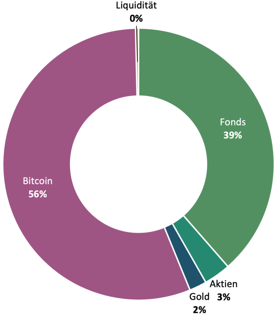 Der Kurs ist regelrecht explodiert und hätte fast die 100k in Dollar geknackt, aber trotz der Stabilisierung unter 100k ist der Anteil in meinem Portfolio nun auf mehr als 50% gestiegen.