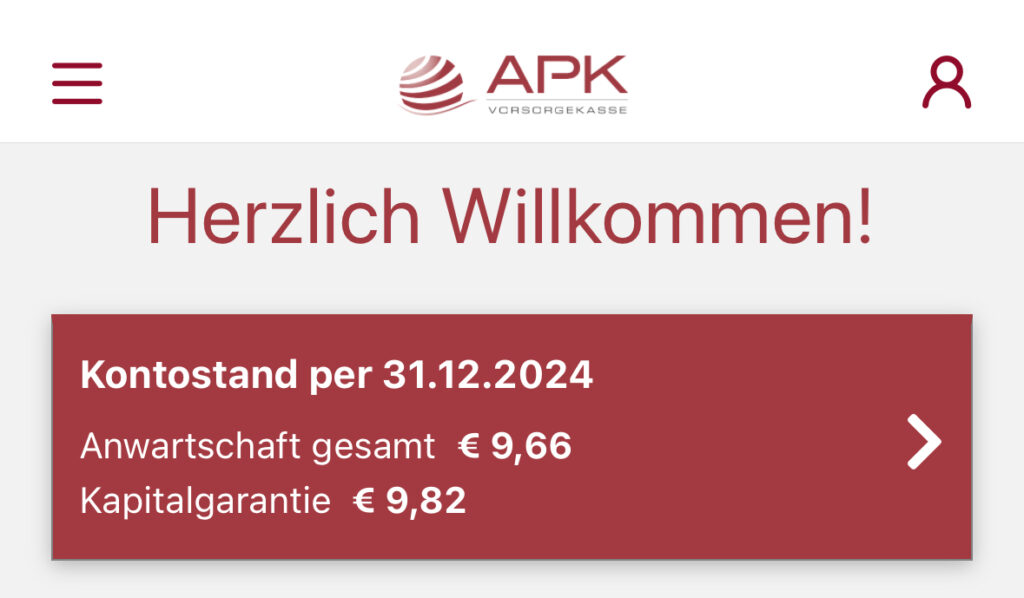 Neu ist ein Dokument, welches ich hinsichtlich der Vorsorgekasse meines Lehrerjobs erhalten habe. Neben der BONUS habe ich mit der APK also ab sofort noch eine zweite Vorsorgekasse, welche Beiträge der „Abfertigung NEU“ für mich veranlagt.
