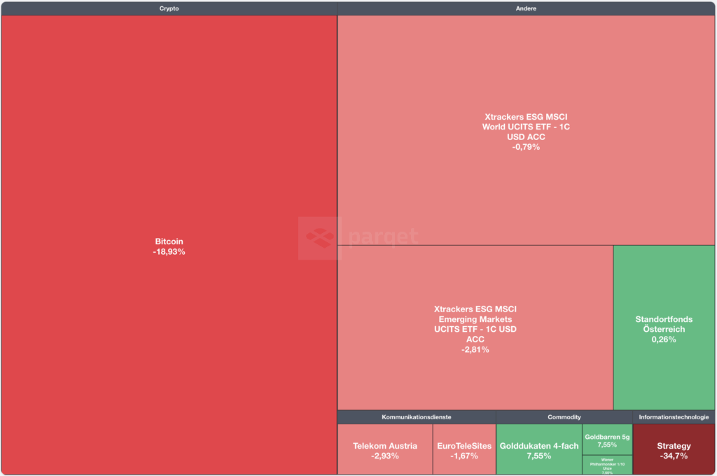 Waren die Aktienmärkte noch vergleichsweise stabil sind und nur mit bis zu 3% im Minus, verzeichnete Bitcoin im November einen Verlust von knapp 20%. Nochmals mehr verlor Strategy – mein Kauf hatte sich also im letzten Monat schon sehr gelohnt. ^^ Gold hingegen ist weiterhin auf ATH.