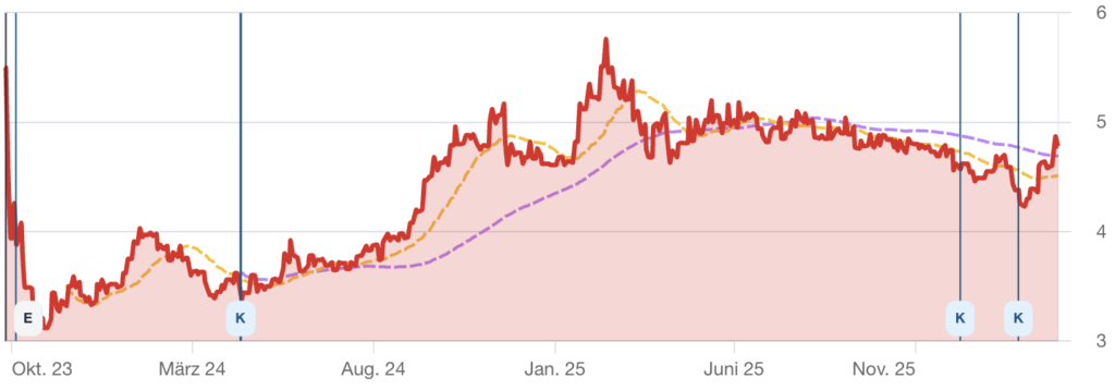 Der letzte Nachkauf im Januar hat fast exakt das Low getroffen und der Kurs wie man schon eingangs gesehen hat gut 13% zugelegt. Mal schauen ob der Trend bleibt.